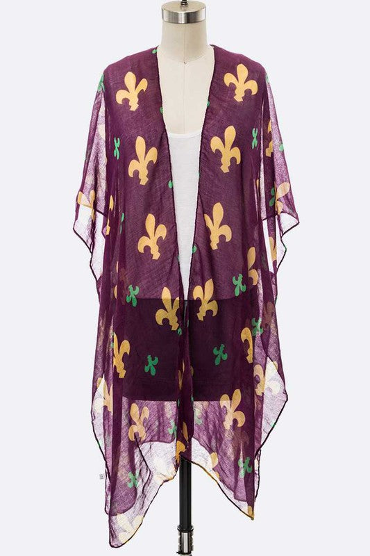 Fleur De Lis Mardi Gras Print Kimono Cardigan