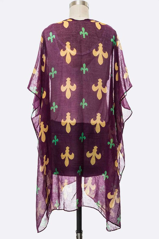Fleur De Lis Mardi Gras Print Kimono Cardigan
