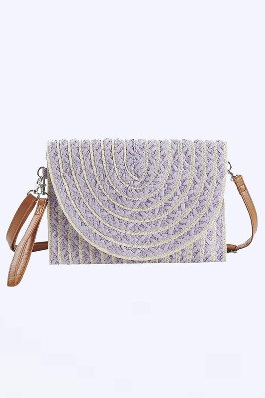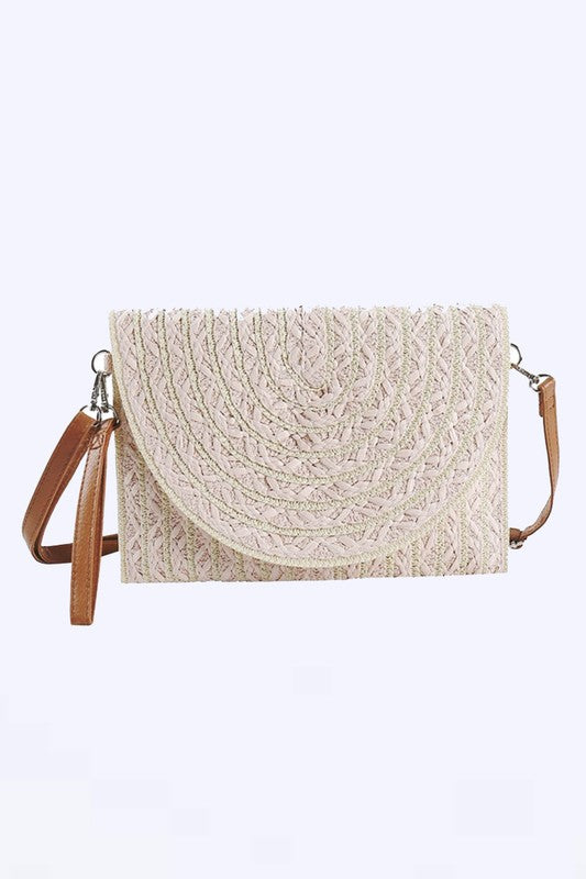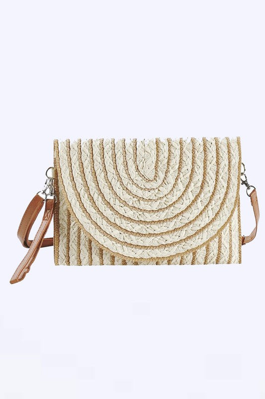 2 Tone Straw Convertible Clutch Swing Bag