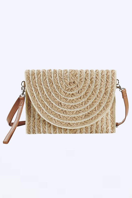 A versatile accessory that transitions effortlessly from day to night. Crafted with a stylish two-tone straw design, this clutch swing bag offers both function and fashion.