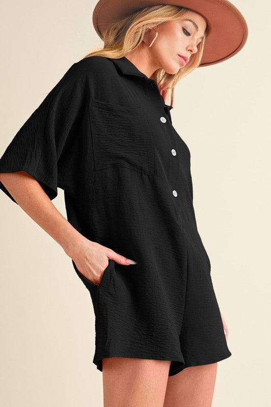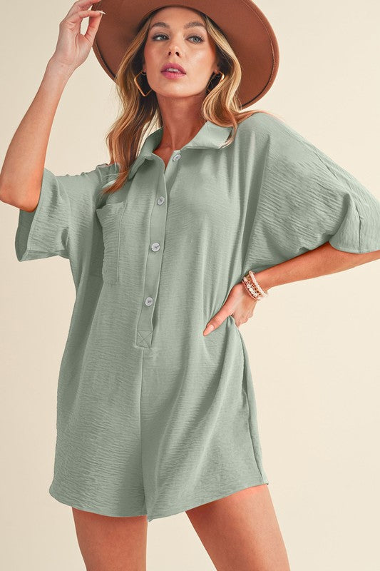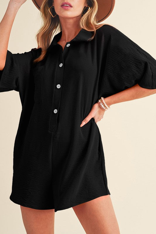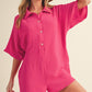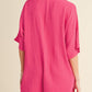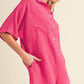 Bright Pink Half Button Collared Loose Romper