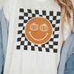 Checkered Pumpkin Eyes Happy Face Graphic Tee