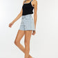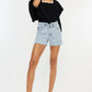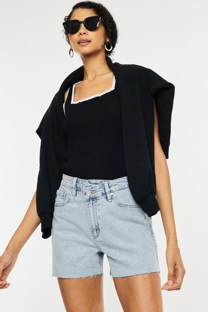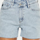 The High Rise Crossover WB Shorts in a light stone wash offer both style and comfort. Made with comfort stretch fabric, they provide flexibility for all-day wear. The five-pocket design adds functionality and classic denim charm. With a relaxed leg fit, they offer a comfortable and flattering silhouette.