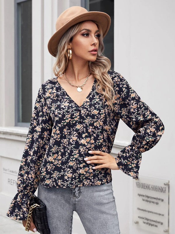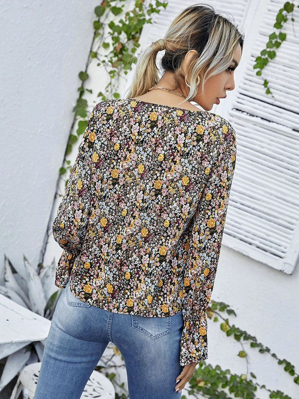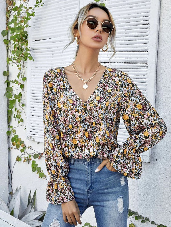 Long Sleeve Floral V-Neck Top