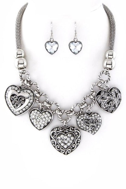 Multi Heart Charms Necklace & Earring Set