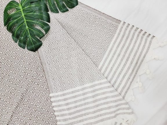 Elevate your space with our best-selling Turkish Towel designs, now reimagined as cozy woven cotton blankets. The perfect combination of style and function, their heavier weight makes them ideal as a bedspread, outdoor picnic blanket, or for cozy nights by the fire. Plus, their lightweight, tightly-woven design ensures they're easy to pack and travel with.