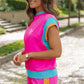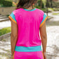 Women Contrast Trim Cap Sleeve Tee Shorts Set
