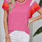 Contrast crew neck and sleeves hits the trend