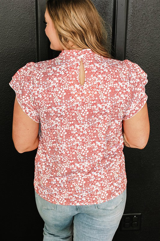 This trendy blouse features playful ruffled sleeves that add a feminine touch, while the floral print brings an elegant and vibrant look. Designed specifically for plus-size figures, it offers a comfortable and flattering fit. The frilled neck detail adds a unique and sophisticated element, making this blouse a stylish focal point in your wardrobe.