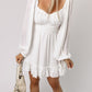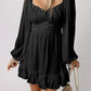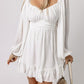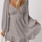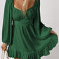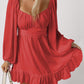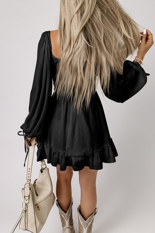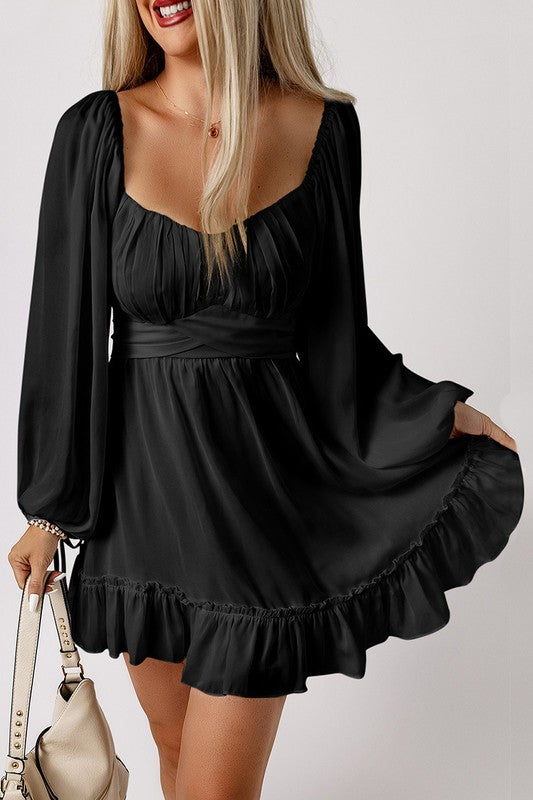This elegant and sweet mini dress features a ruffled design that adds a touch of sophistication. The high waistline beautifully accentuates your proportions, while the square neck and long sleeves enhance your charm. Ideal for pairing with high heels, boots, necklaces, bags, and other accessories, this dress is perfect for both casual outings and special occasions.