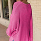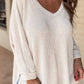 Women Waffle Knit Side Slits Loose Fit V Neck Top