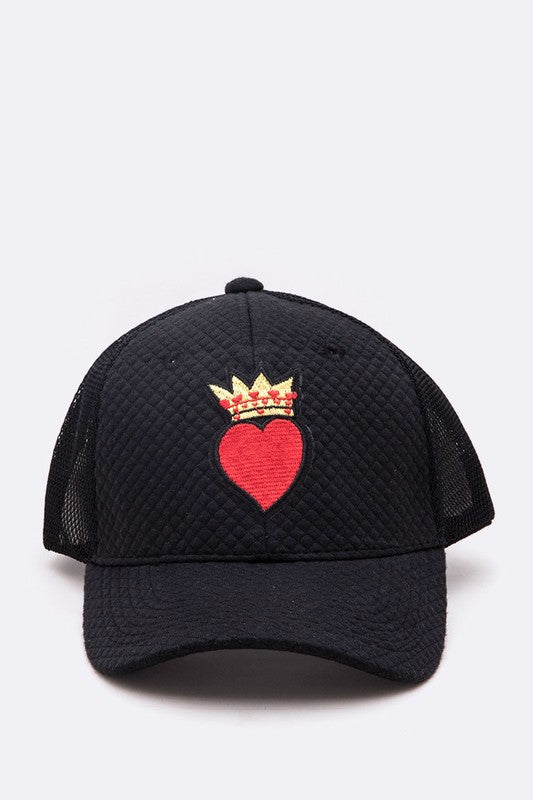 Crown Heart Patch Quilted Cotton Trucker Cap