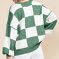 Green Checkered Bishop Sleeve Sweater