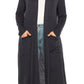 Plus size, solid duster cardigan in a loose fit with an open front, long sleeves, and side pockets.